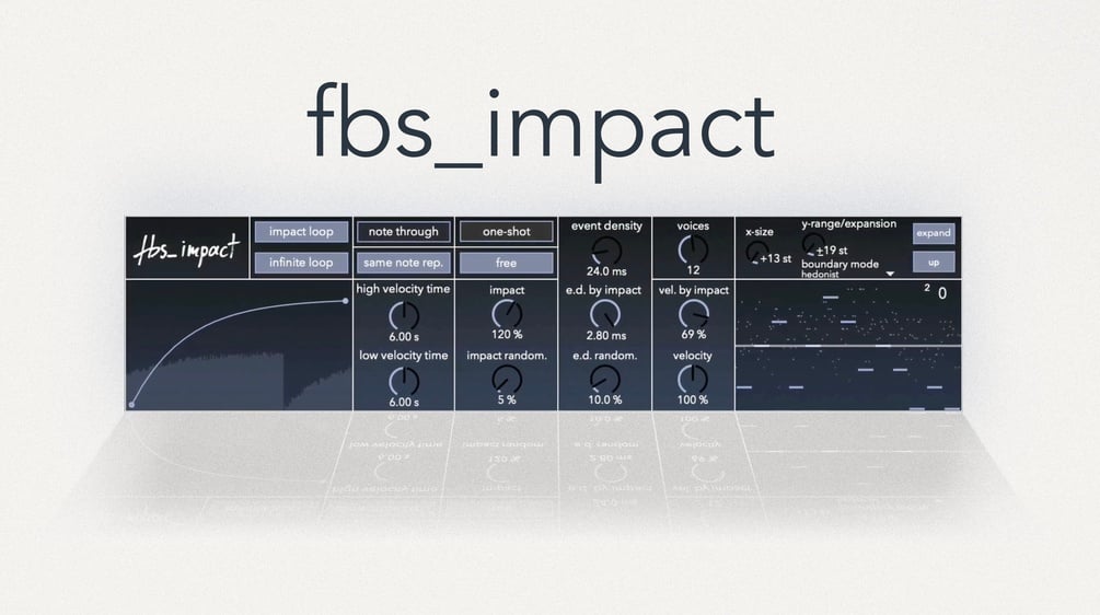 the fbs_impact is a Max for Live MIDI plug-in for Ableton that reacts to notes by adding pitch and velocity depended intervallic structures. It is a tool to turn simple MIDI melodies and chords into lush textures and expressive outbursts. Watch the trailer for more information.